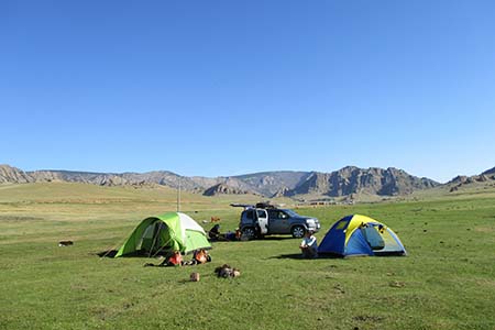 - 大草原にテントを設営し、4泊5日の遠出の旅へご案内致します。