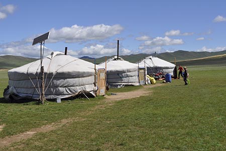 - 遊牧民のゲルでのホームスティ。お食事は遊牧民の食事以外に皆様用にもご用意します。
