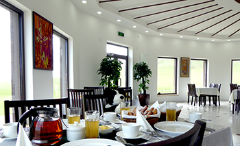 ![]() モリンドキャンプは大草原のただなか! | ![]() モリンドキャンプレストランの大きな窓が、 絵画のように、草原の四季を映し出しています! |